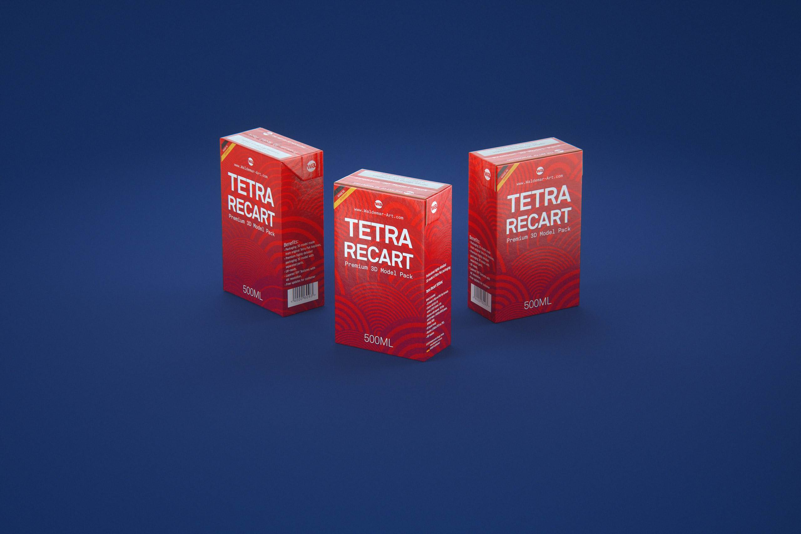 High-quality 3D model of Tetra Pak Recart 500ml, designed for realistic Container packaging visualization and close-up rendering.