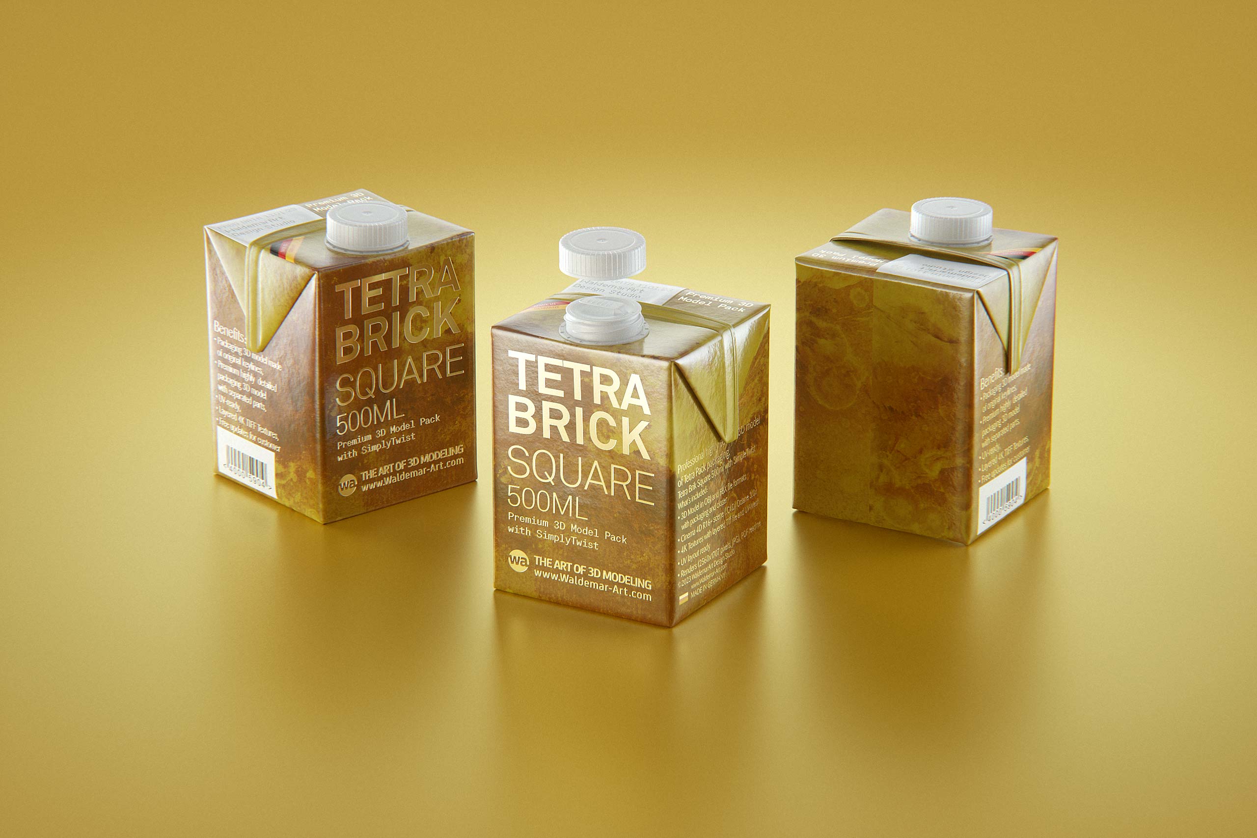 High-quality 3D model of Tetra Brik Square 500 ml with SimplyTwist closure, designed for realistic bottle packaging visualization and close-up rendering.
